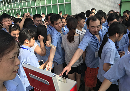一方有難,八方支援。6月12日上午8:30,棟方全體員工齊聚在升旗臺(tái)前,為嚴(yán)安喜同事進(jìn)行現(xiàn)場(chǎng)募捐。10元、20元、100元、200元、500元......大家紛紛慷慨解囊、踴躍捐款,獻(xiàn)出了自己的一份愛(ài)心和力量,現(xiàn)場(chǎng)氣氛異常感人。